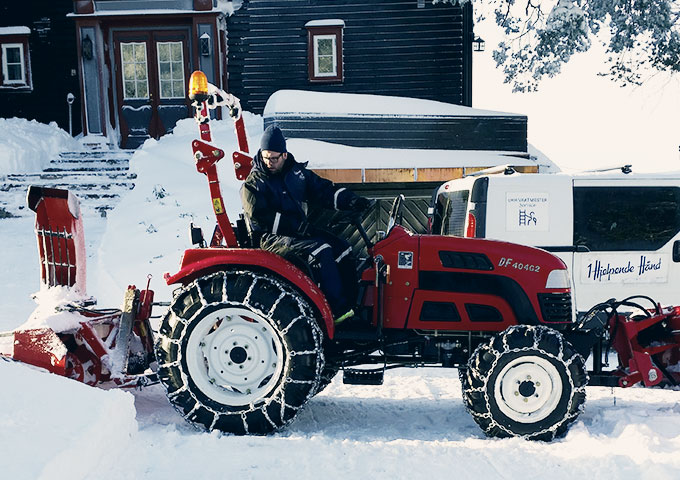 Vi hjelper deg med brøyting og vintervedlikehold, og hjelper deg å holde gårdsplasser, innkjørsler og parkeringsplasser ryddet for snø. Vi har et bredt spekter av maskiner, fra små traktorer til store hjullastere.
